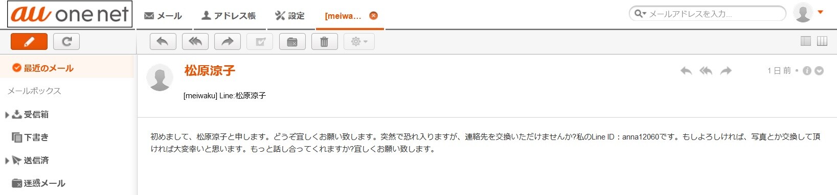松原涼子という人から、お誘いのメールが届いた。
