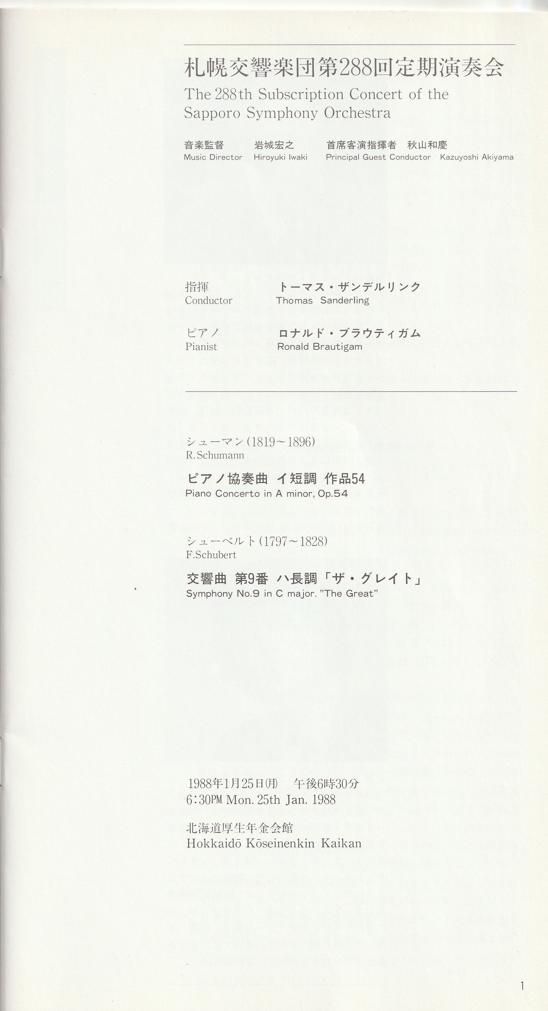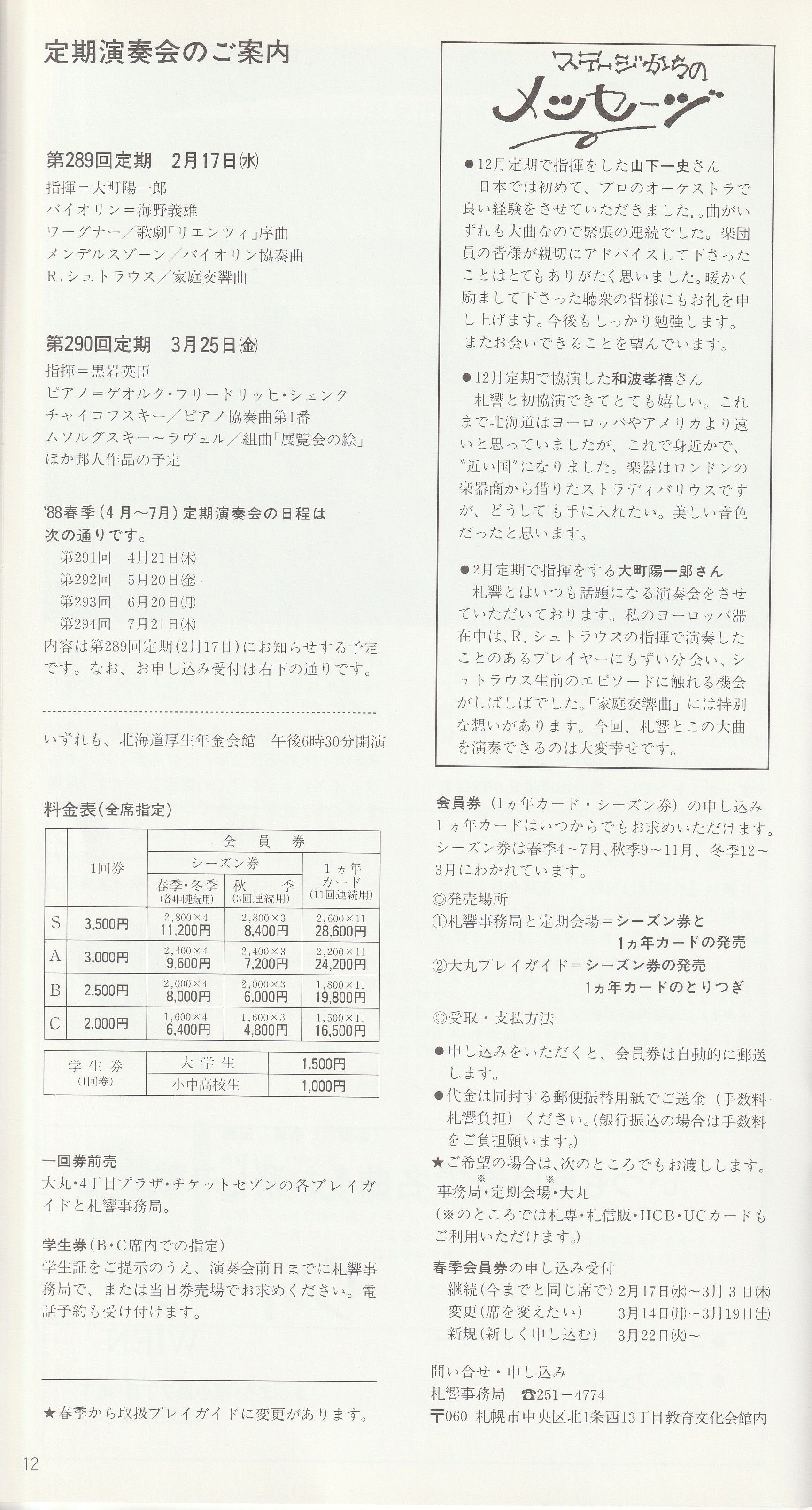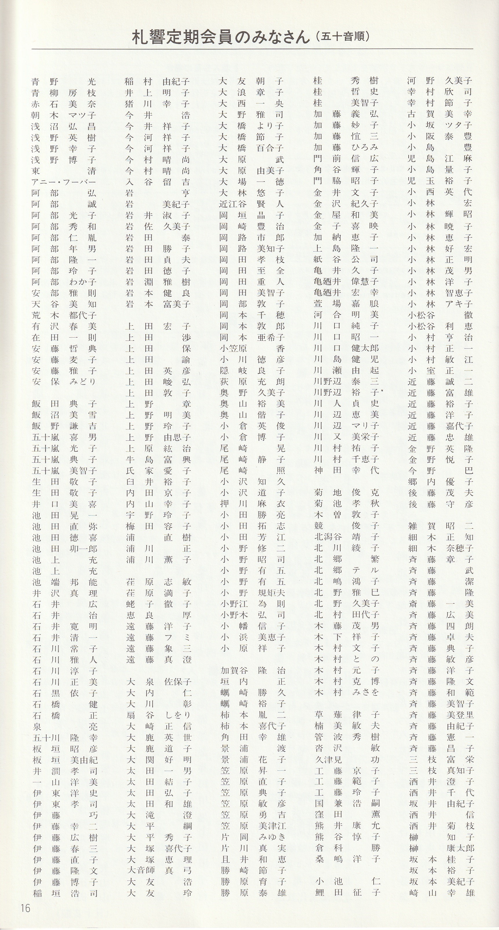 この月から、維持会員のみならず定期会員の名前もパンフレットに掲載されるようになった。もちろん札響として、感謝の意を表しているわけだが、個人情報がどうだこうだとうるさいことをいわない、おおらかで良い時代だったと思う。