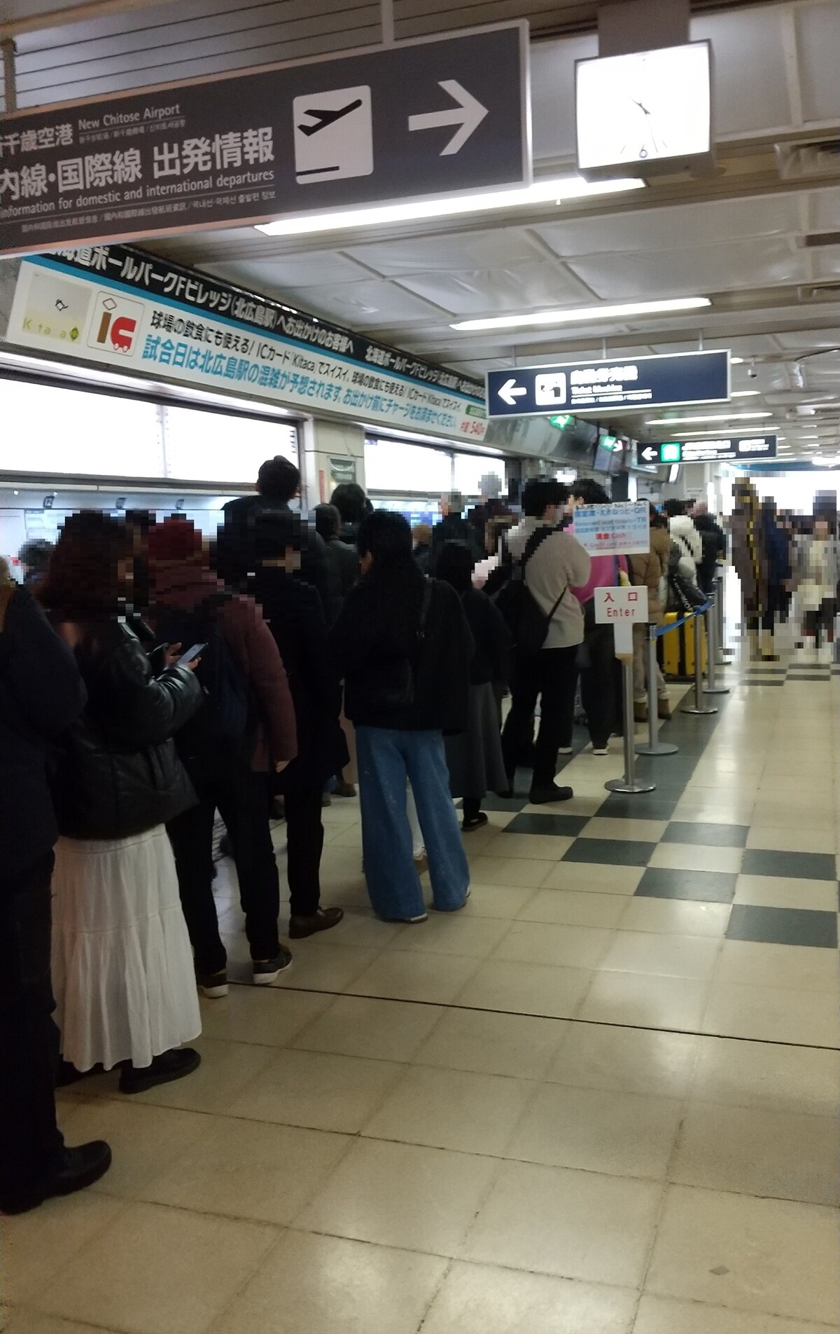 こんなんじゃ列車の出発時間が迫っていても、切符も買えないし、Kitaca にチャージすることもできない(『えきねっと予約者、指定席購入者』の列と『自由席、乗車券購入者』の列があるが、どちらも同じような状況)。