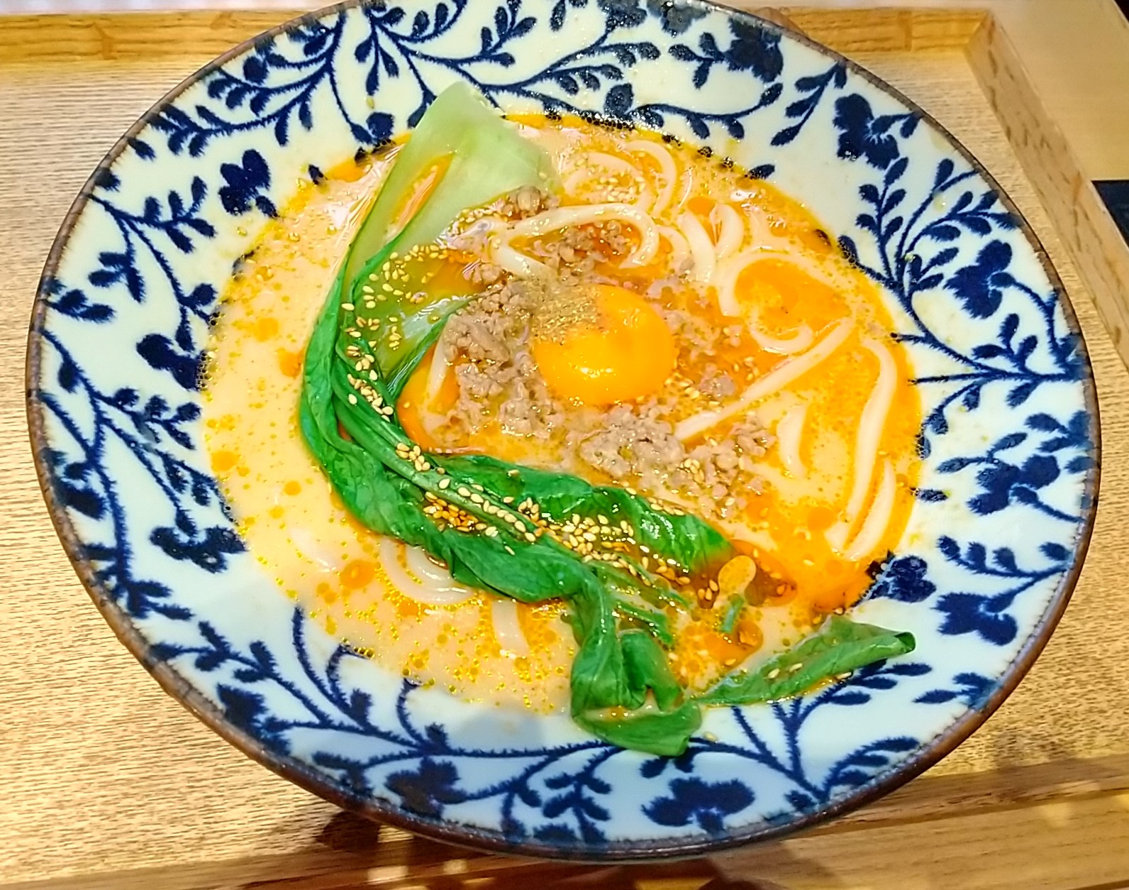 妻は豆乳坦々うどんを食べた(担々ではなく坦々)。