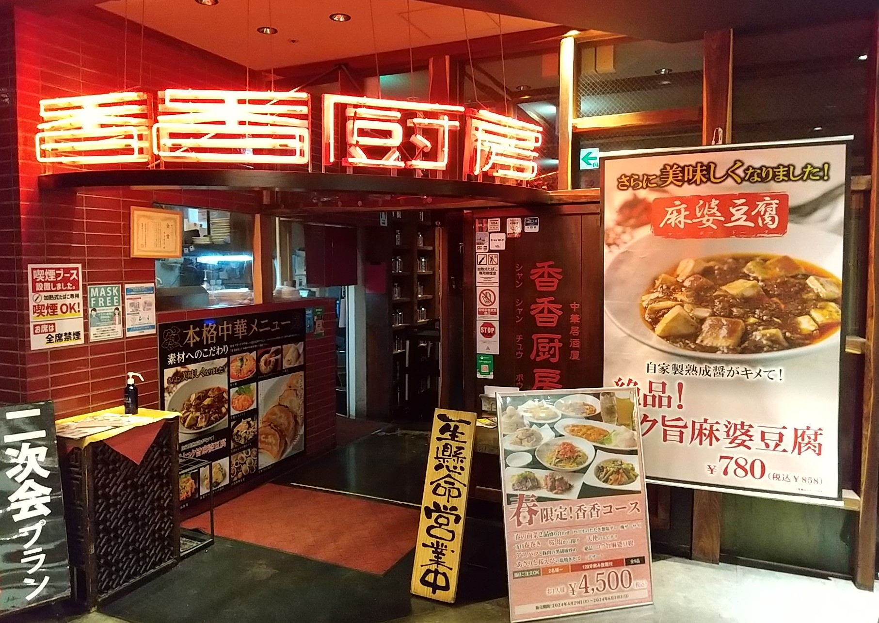 この日の夜は、(偶然にも)前の週の月曜日に続いて「香香厨房」で食事。