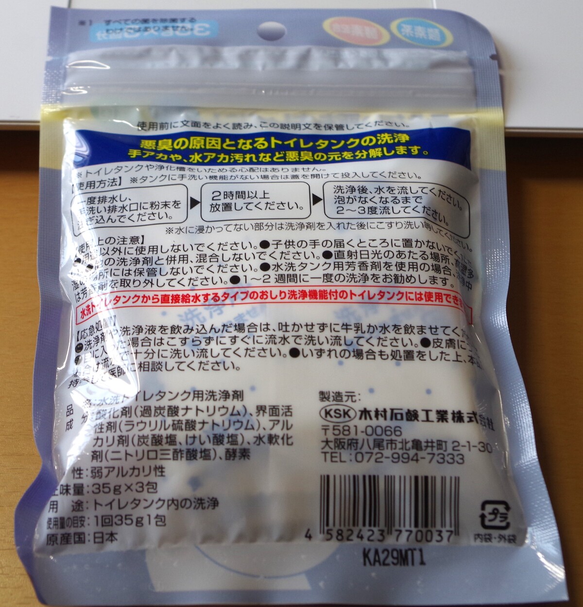 そんななか、その名もズバリ「トイレタンク洗浄剤」というのを「ヨドバシ.com」で発見した。木村石鹸工業(株)という会社が製造している商品だ。