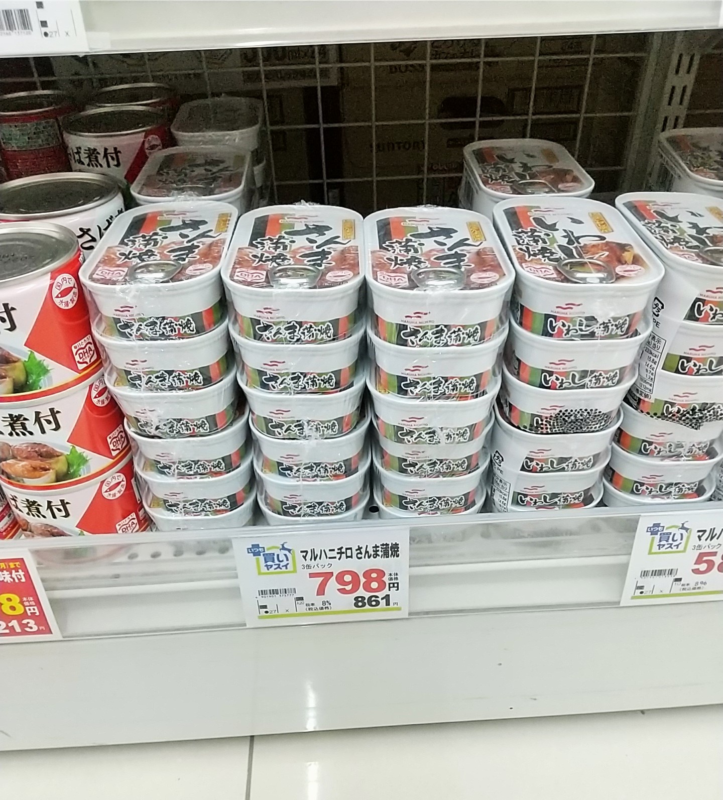 翌日サツドラに行くと、同じさんま蒲焼の3缶パックは税込み861円だった。