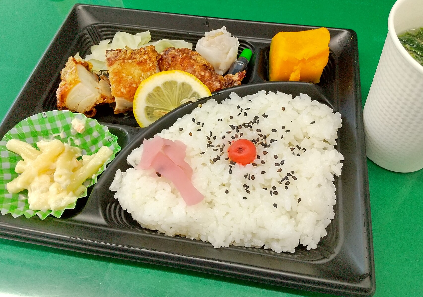 「今月のおすすめ弁当(霜月)」と迷ったが(メンチの姿がそこにあった)、「日替り弁当 A(鶏竜田揚げ)」に魅かれ、そちらにした。