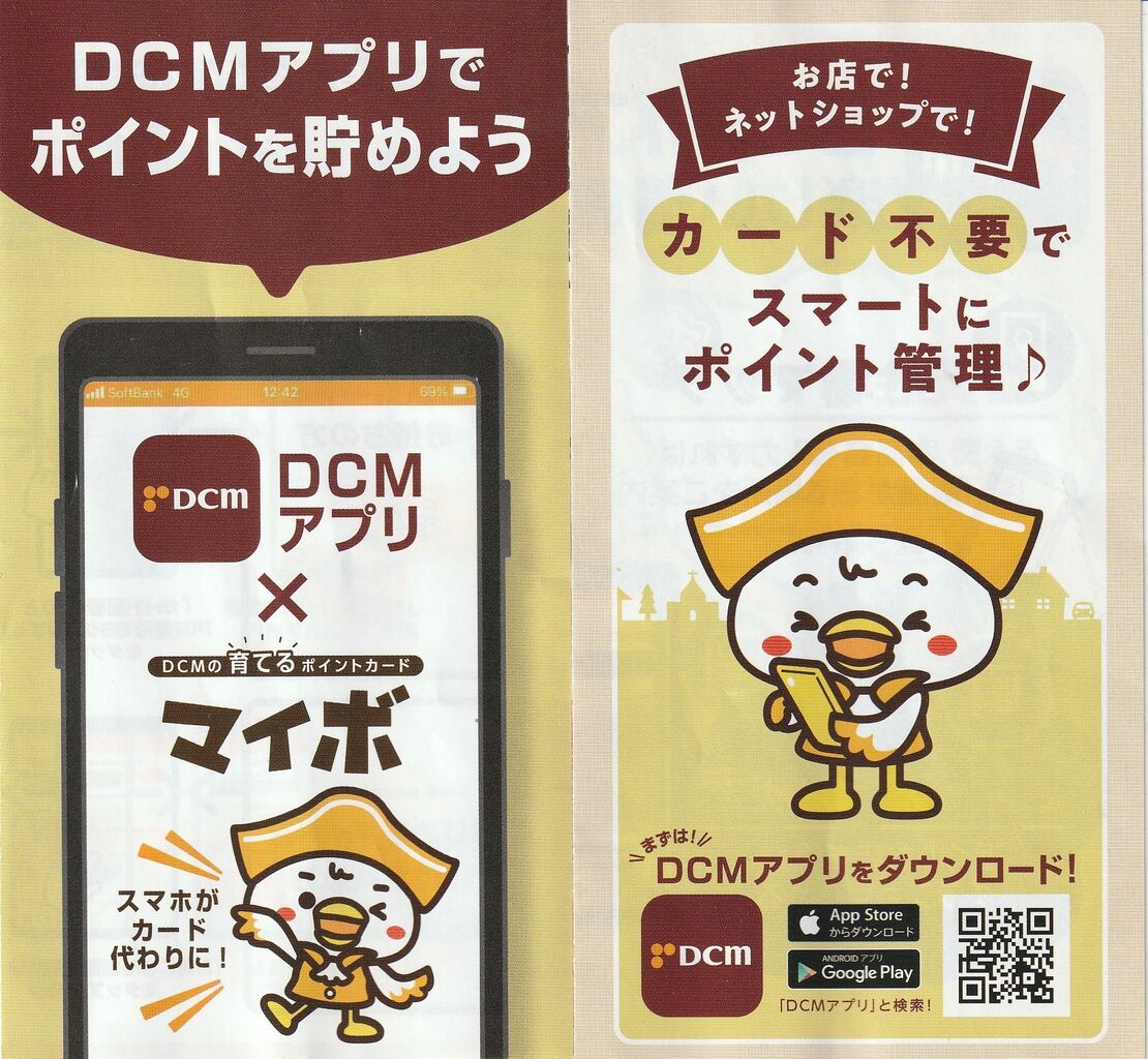 これまでは DCM で買い物をするたびに「マイボカードをお持ちですか?」と聞かれ「いえ。持ってないです」と答え続けてきたが、DCM アプリをインストールするとそれがマイボカードになるというので、「持ってないです」から卒業し「このバーコードが目に入らぬか!」と提示できるようにアクションを起こしたわけだ。