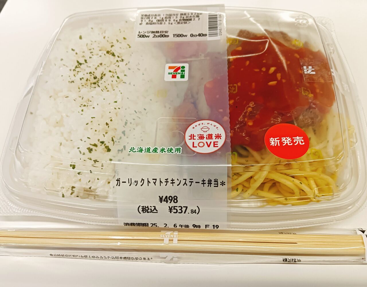 その弁当は新発売の「ガーリックトマトチキンステーキ弁当」。