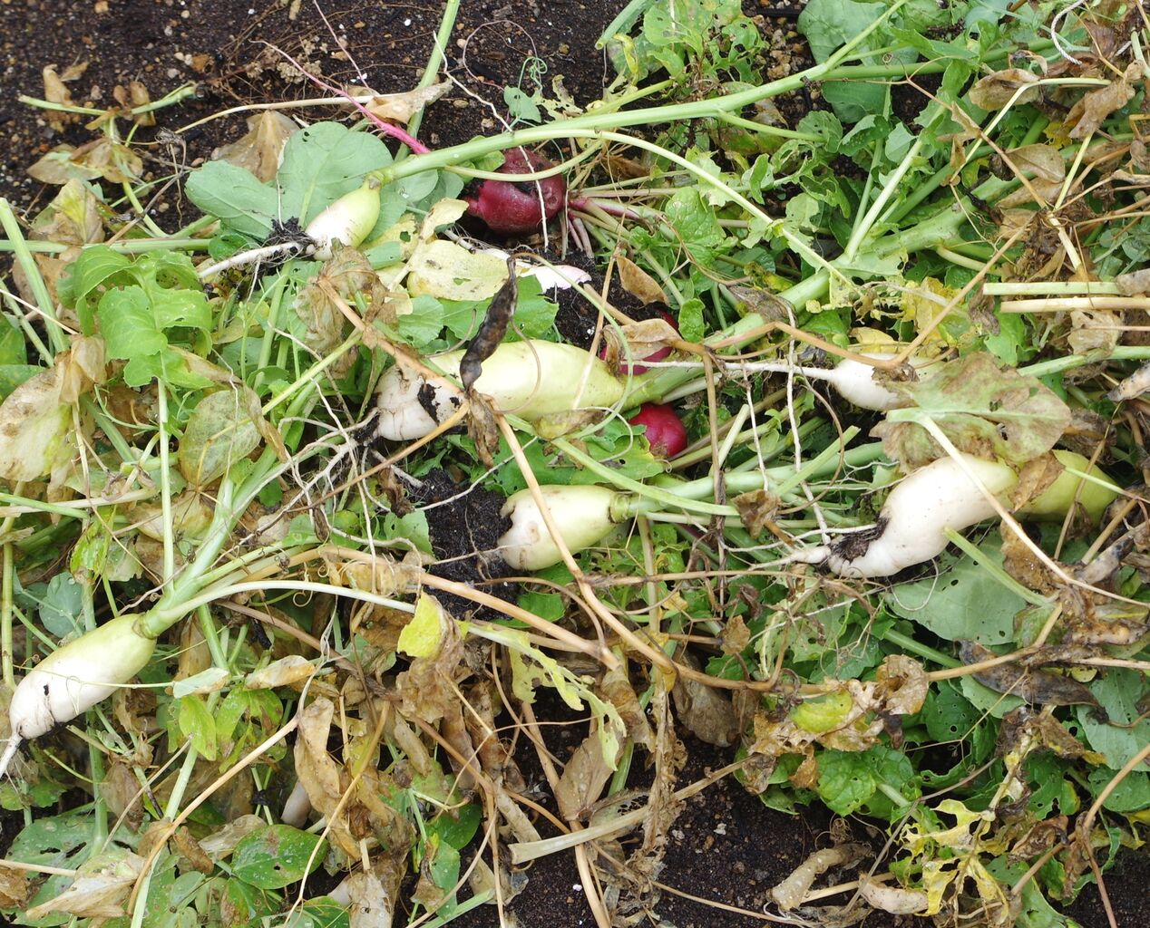 虫にかじられた痕がいくつもあって、食べる気になれないので土から抜いた。