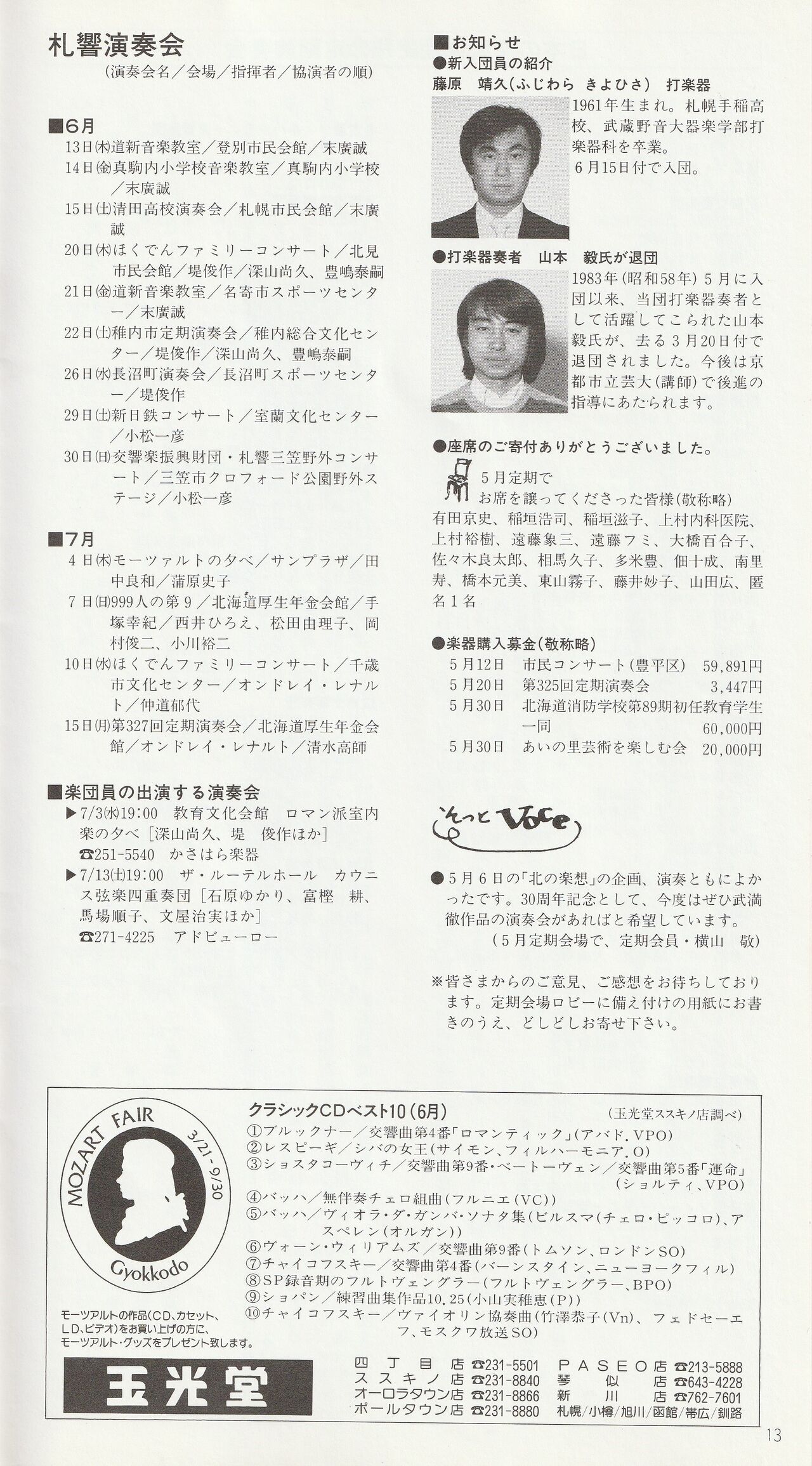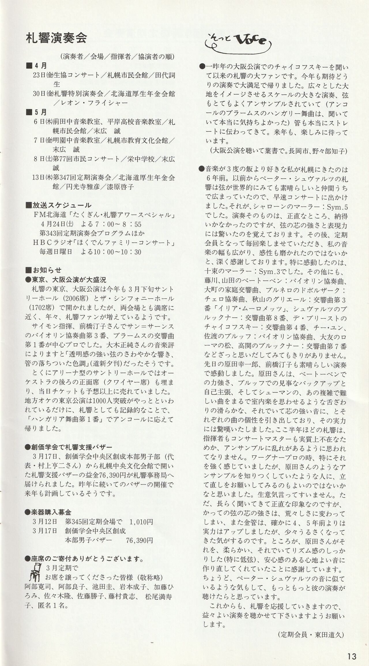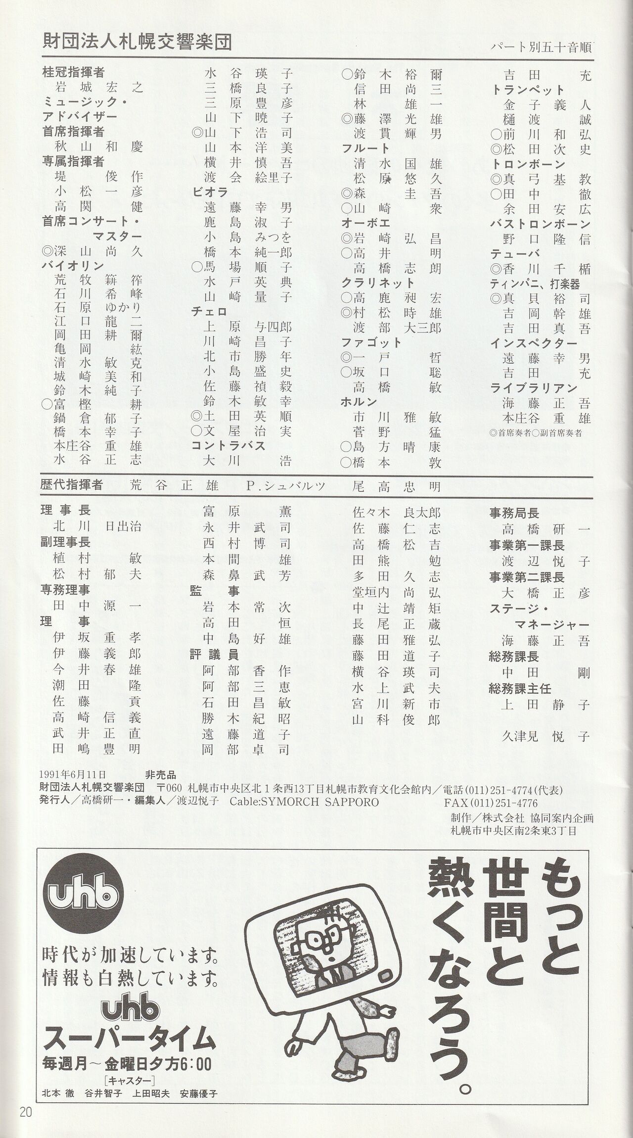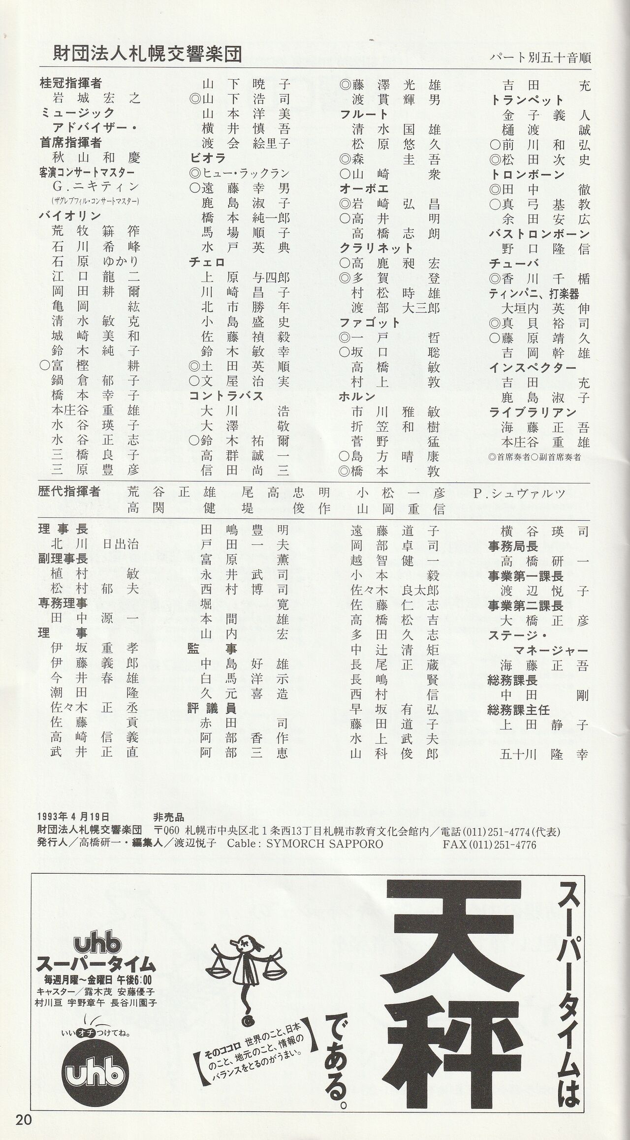 後日、AIR-G で放送されたのをエアチェックして聴いたが、会場で感じた以上にぎこちないような演奏だった。