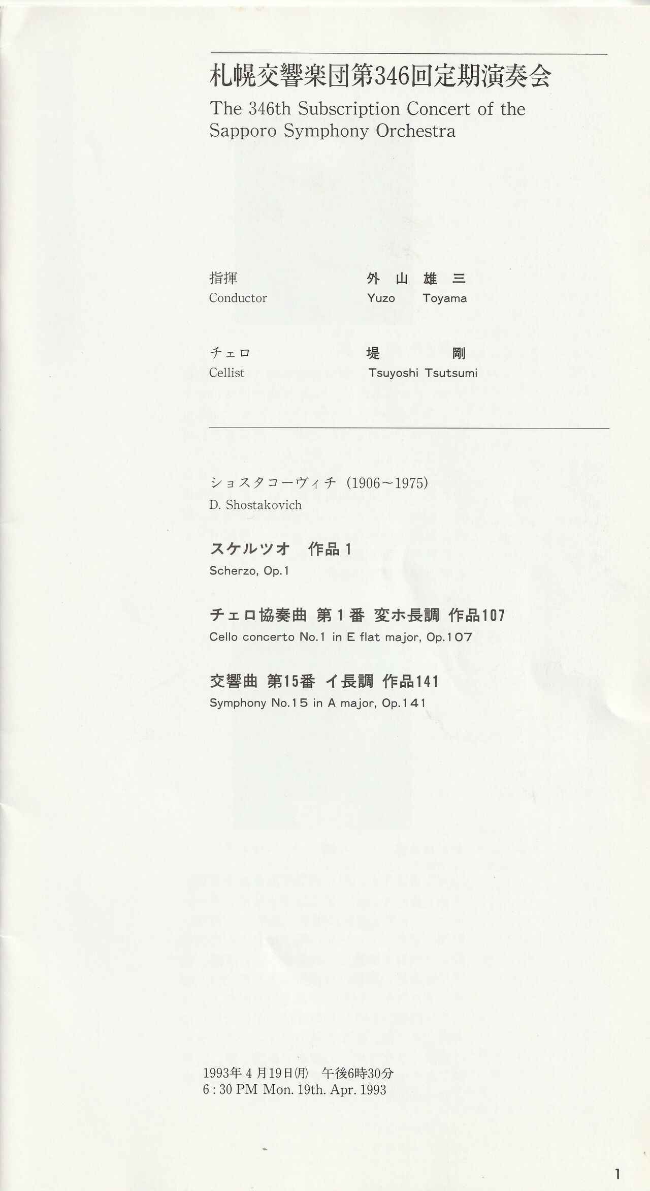この日は次男の1歳の誕生日だったが、それでもまっすぐに帰宅せずに札幌市民会館に行ったのはショスタコーヴィチの交響曲第6番が演目にあったから。