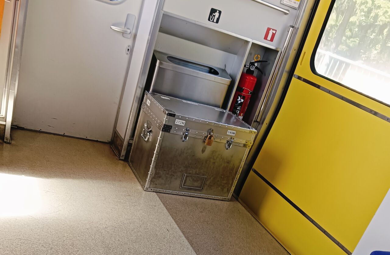 私は6両編成(車両は731系)の最後尾の車両の、いちばん後ろのドアから乗ったが、そのときに JR の職員さんが、こんな荷物を積み込んだ。
