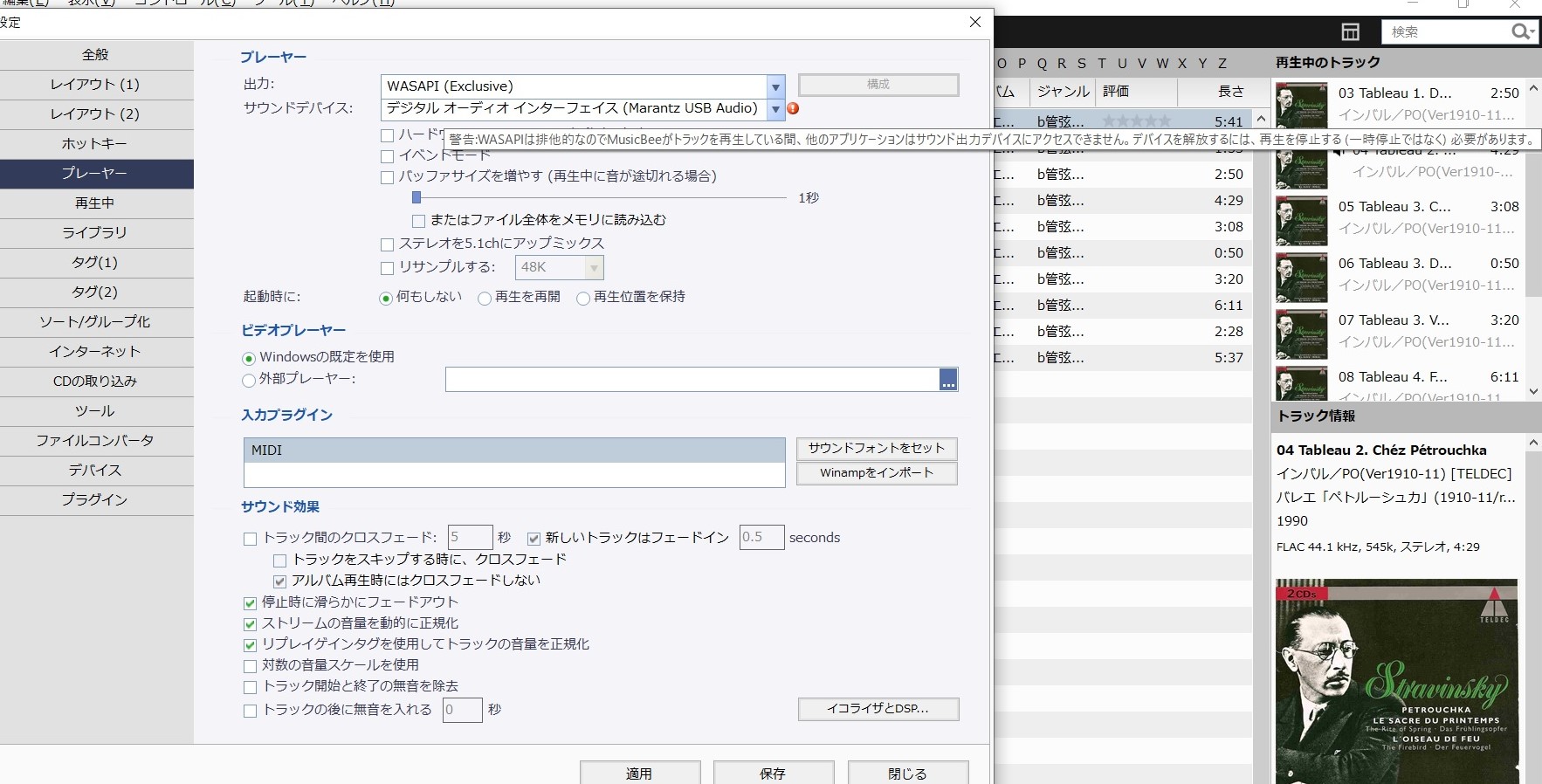 その後は 外付け SSD を購入し、ここにもリッピング音源を保管。SSD とパソコンを USB 接続し、パソコンの音楽再生ソフト MusicBee で音源を再生することにした。パソコンと CD プレーヤー(SA8005)を USB で有線接続し、CD プレーヤーに搭載されている D/A コンバーターを使っての再生である(実際には NAS が崩壊する少し前から、この方法を使い始めていた)。