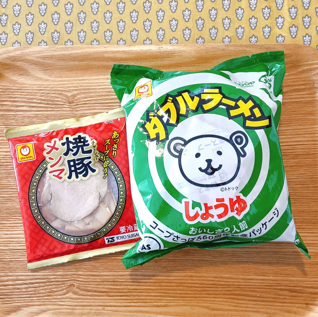 この日の昼は7月に買った、そして来月に賞味期限を迎える "コープさっぽろ60周年記念パッケージ" のマルちゃんのダブルラーメンを作って食べた。