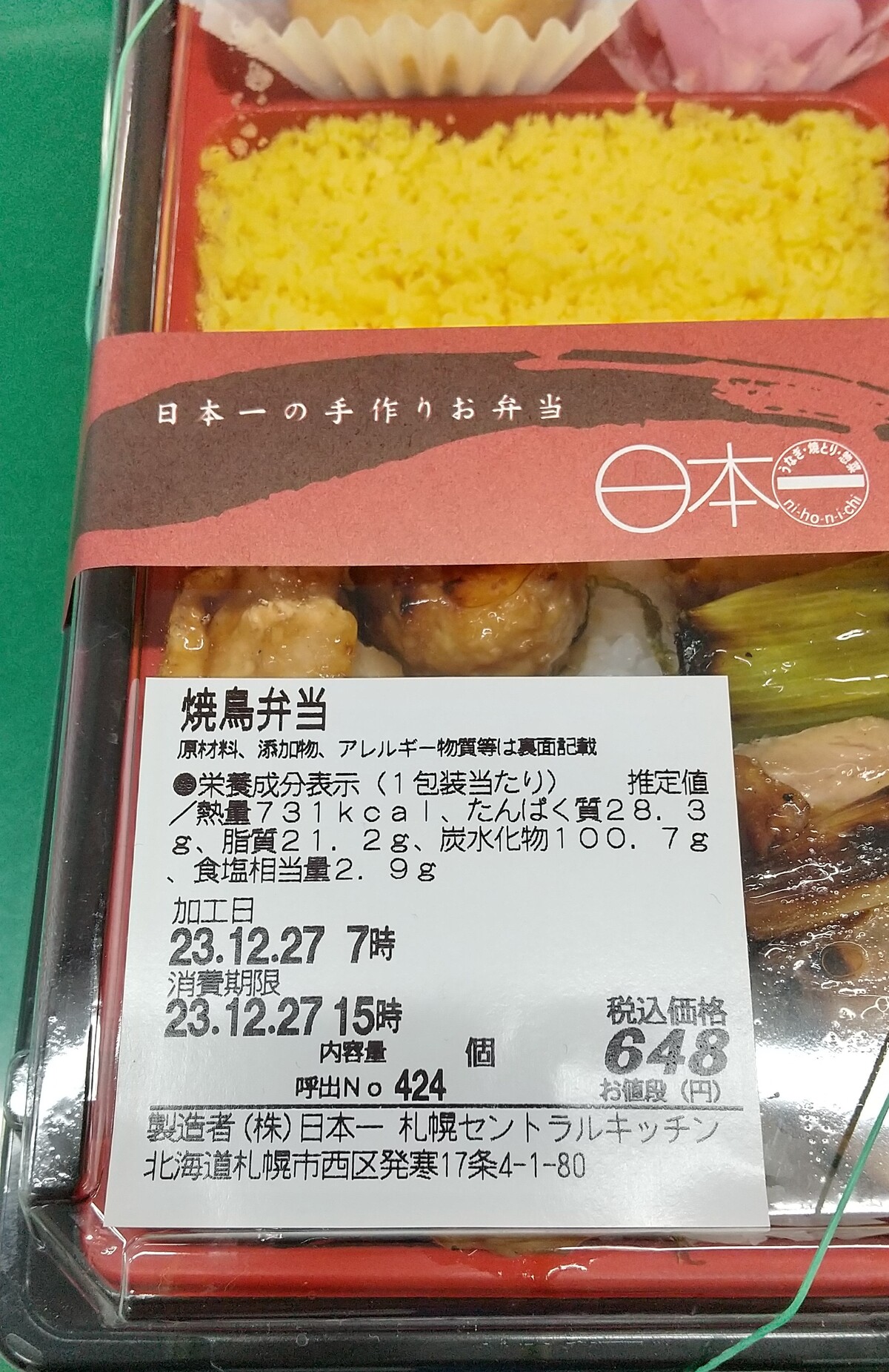 「布袋」監修のザンギ弁当が2つ残っていたので、妻の分も合わせて買った。