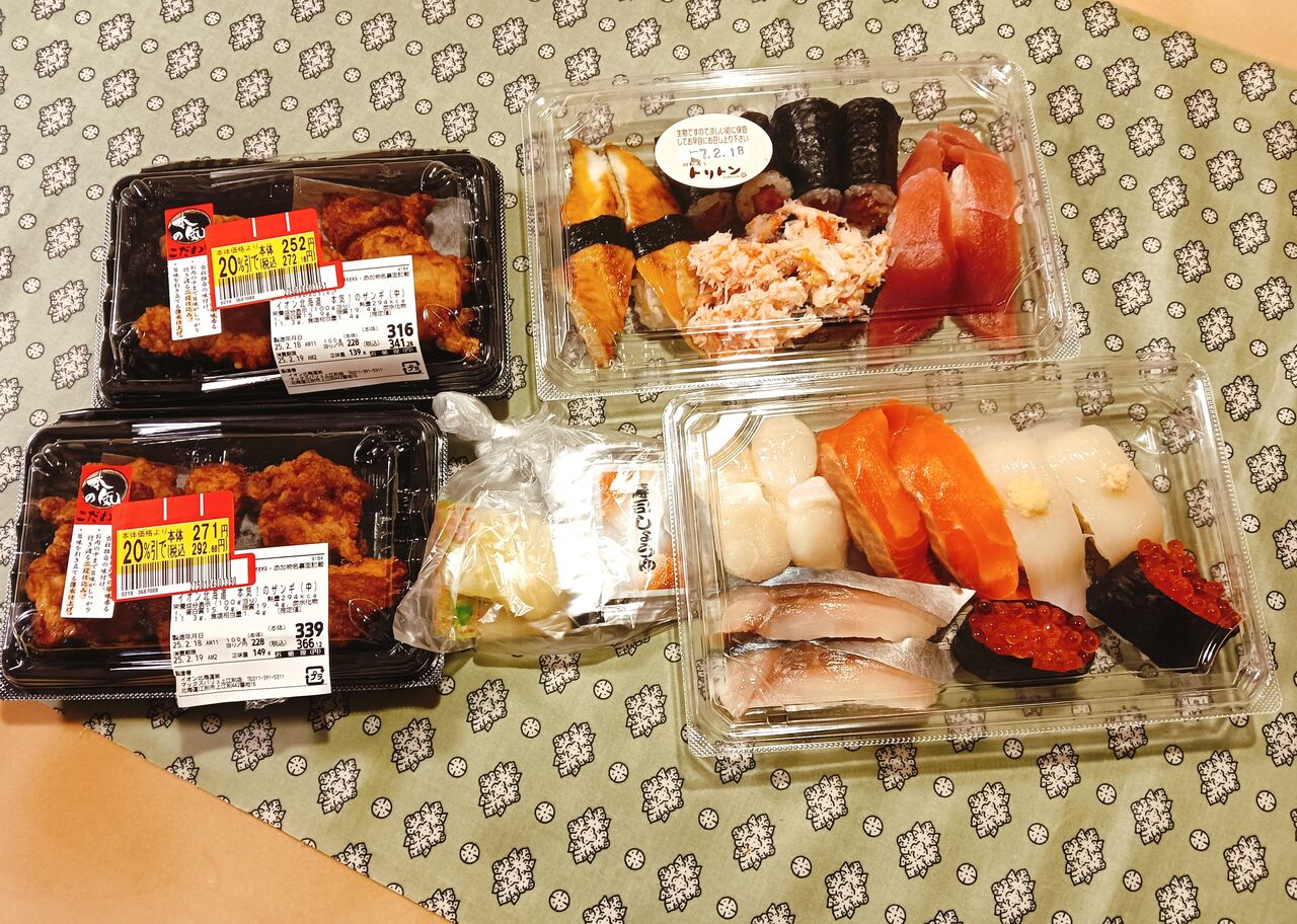 私が飲み会ということは、私の夕食がないということで、帰りにローソンに寄った。
