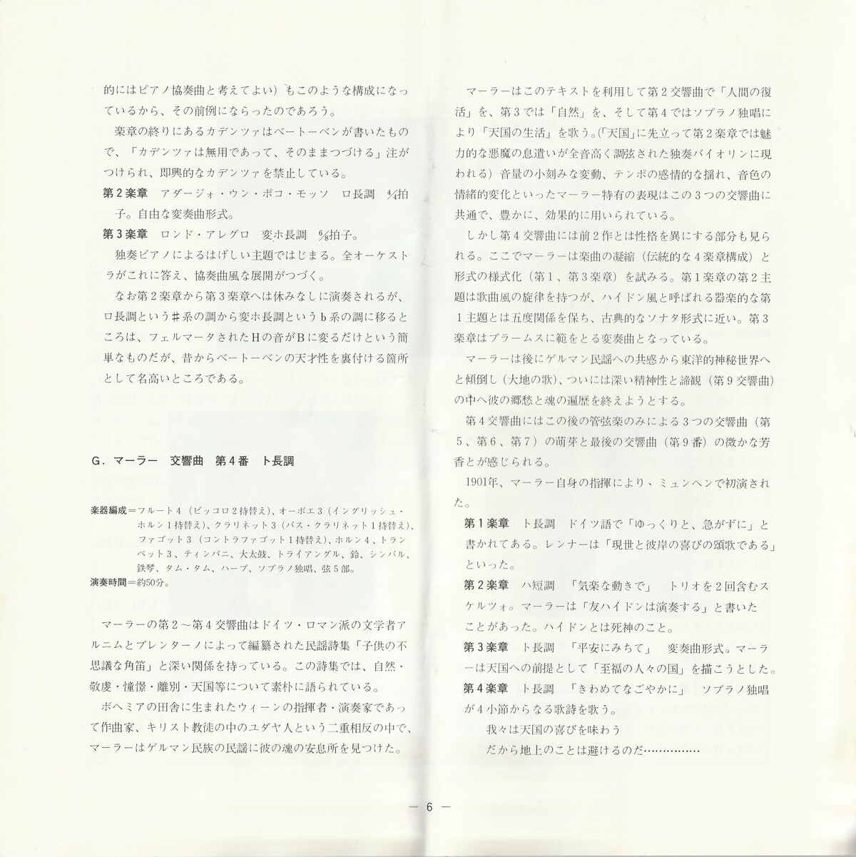 【構成】 2部6楽章(各部の3つの楽章は、それぞれ続けて演奏される。演奏時間約30分)