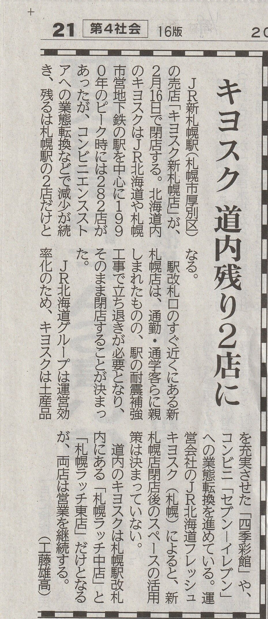 ラーメンといえば、先月24日の北海道新聞に載ったこの記事。