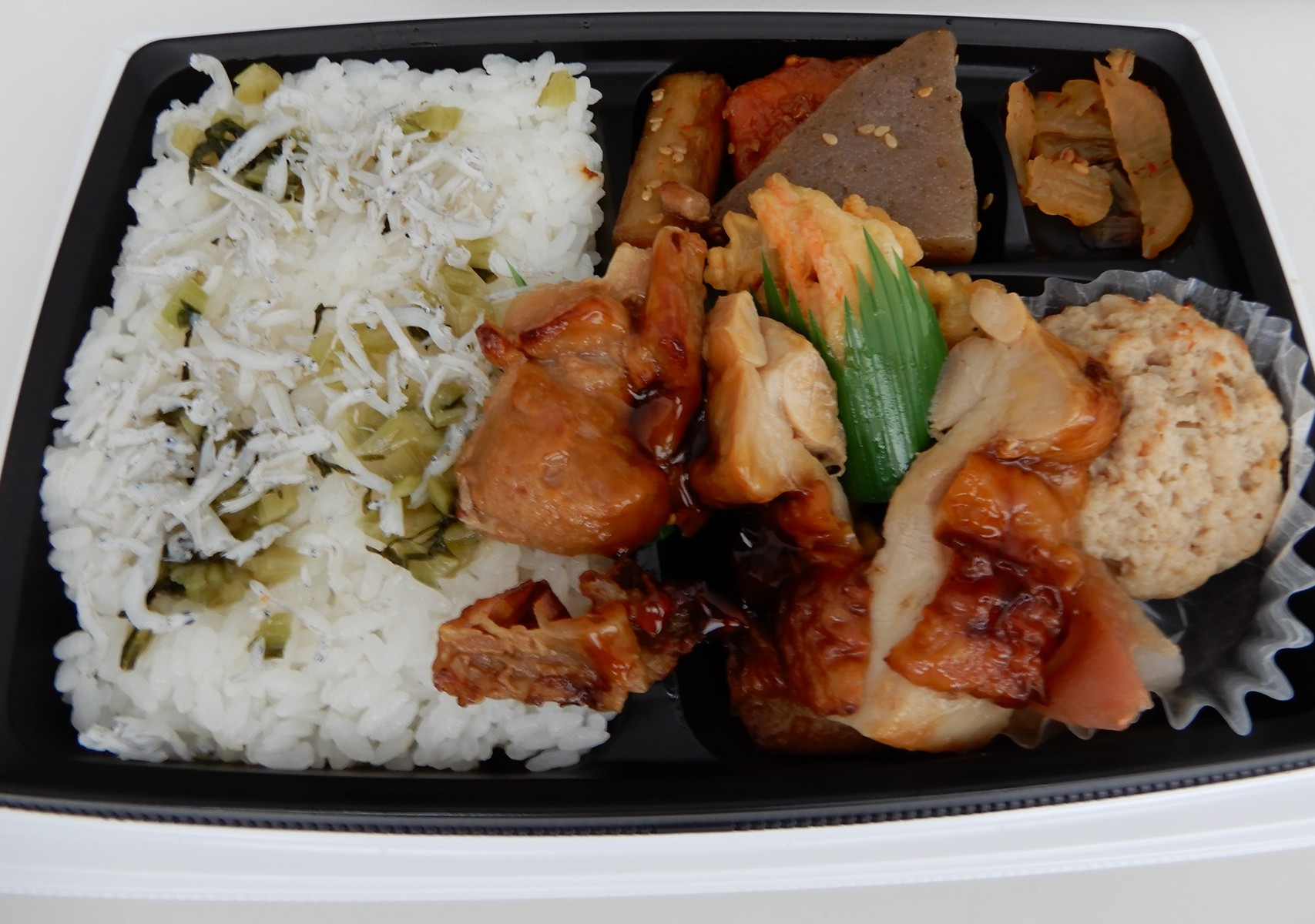 その通りの良い「いらっしゃいませぇ~」という声に購買意欲を高めさせられ、弁当の棚に向かうと、またまた見たことのない弁当を発見。しらすと野沢菜である。
